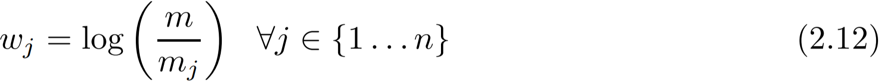 - m_j가 item인 j의 등급 수이고 m이 총 user의 수라면 항목 j의 가중치 w_j는 다음과 같이 설정됩니다.