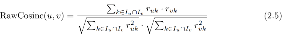 - 평균 중심 등급이 아닌 원시 등급(user가 매긴 등급)에 코사인 함수를 사용하는 것입니다.