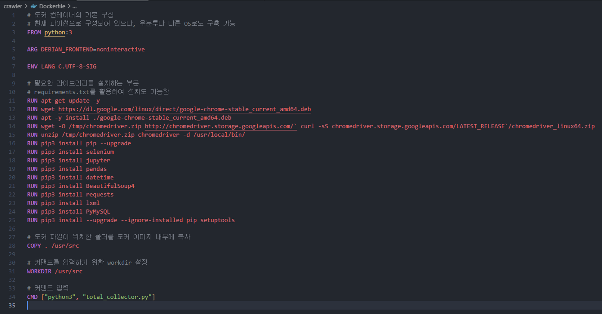 도커 도커기초 도커이미지 도커 이미지만들기 도커파일작성 도커파일 크롤링 크롤링 기초 유튜브 크롤링 셀레니움 뷰티풀숲 뷰티풀수프 selenium beautifulsoup python python 크롤링 스크래핑