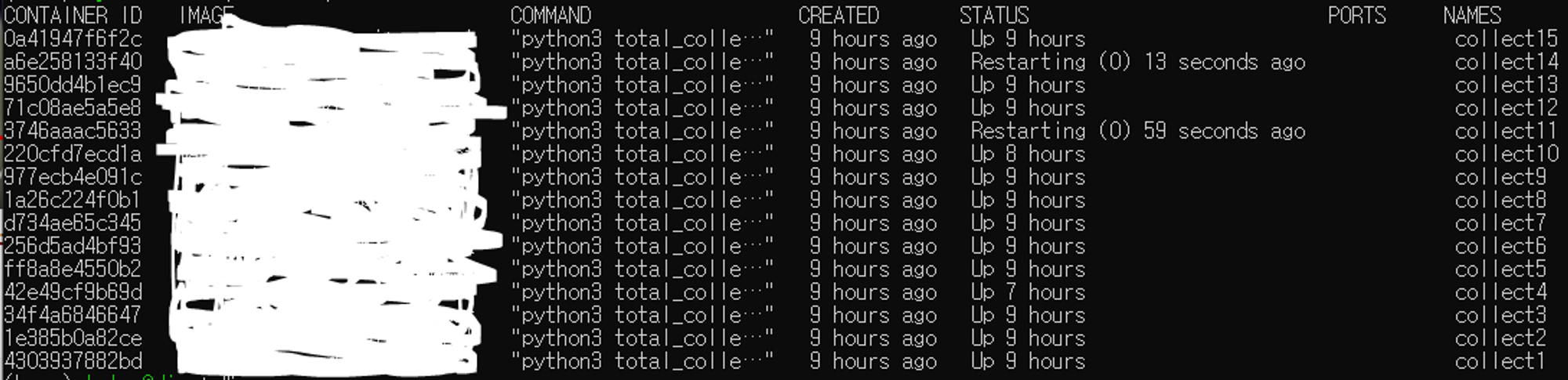 이걸 해결하기 위해서 도커로 크롤러 이미지를 만들고, 컨테이너를 여러개 돌려서 해결해 보기로 했다.